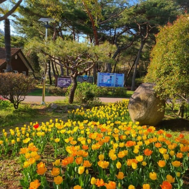 전남 장흥에는 형형색색 튤립이 만발한 정원이 있어요.