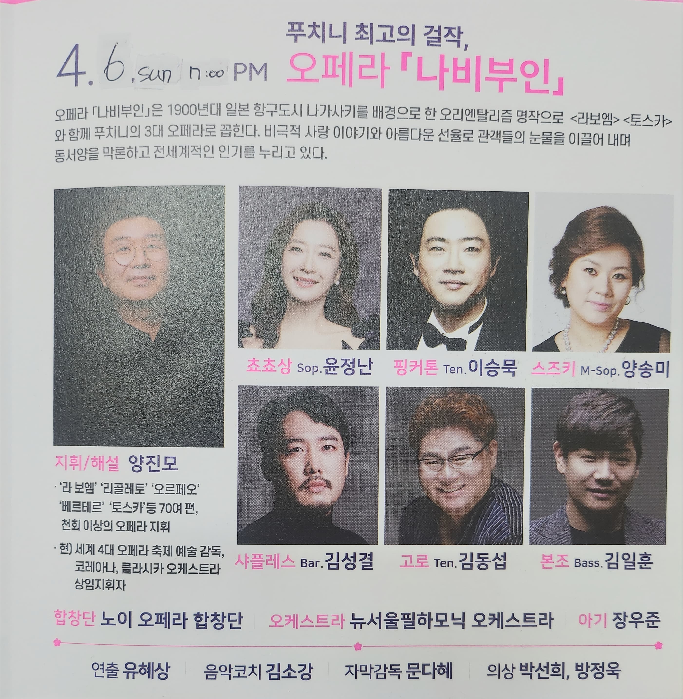 - 푸치니 최고의 걸작 오페라, ‘나비부인’ 감동의 무대가 일요일 저녁으로 미뤄졌어요!