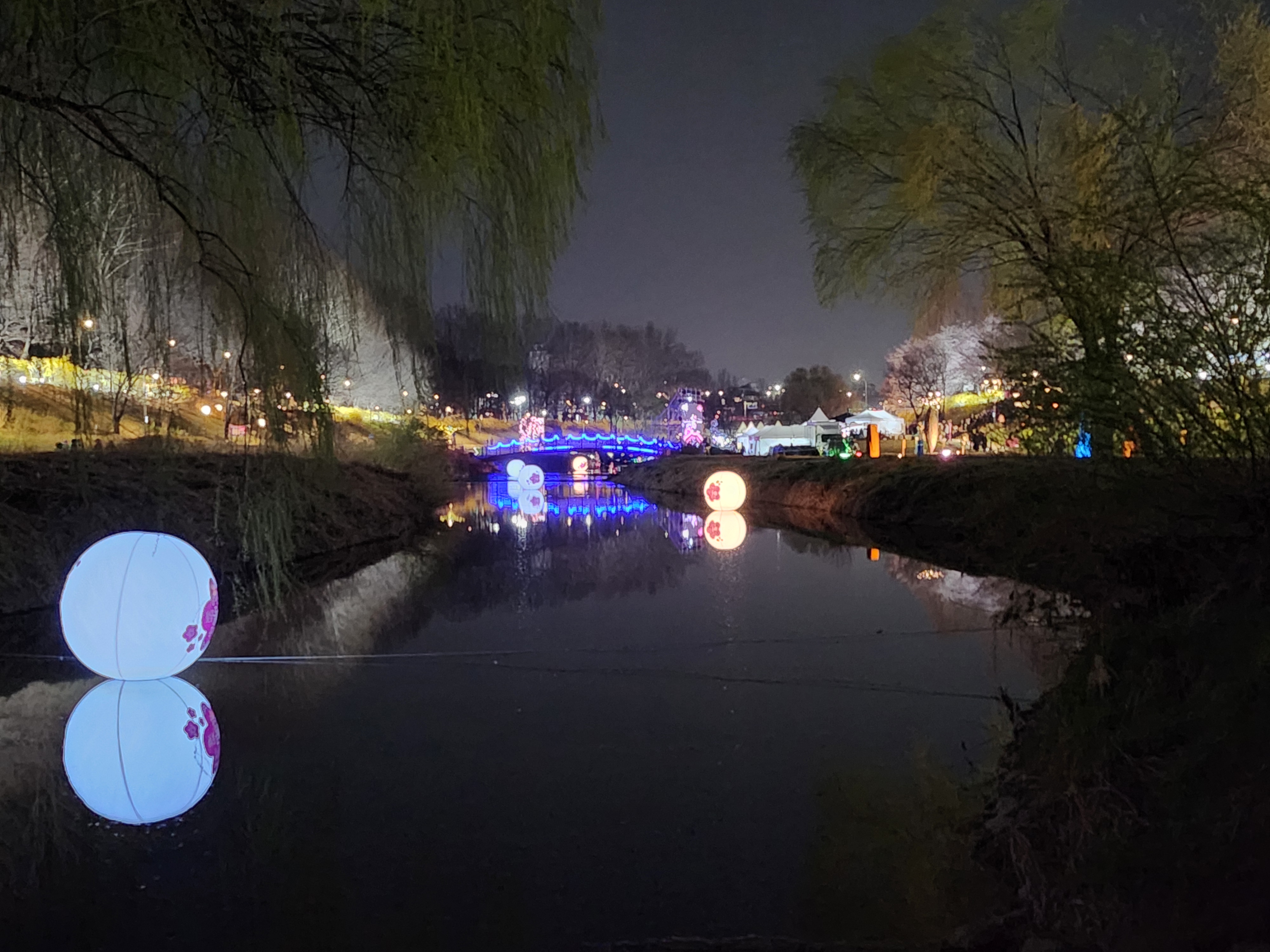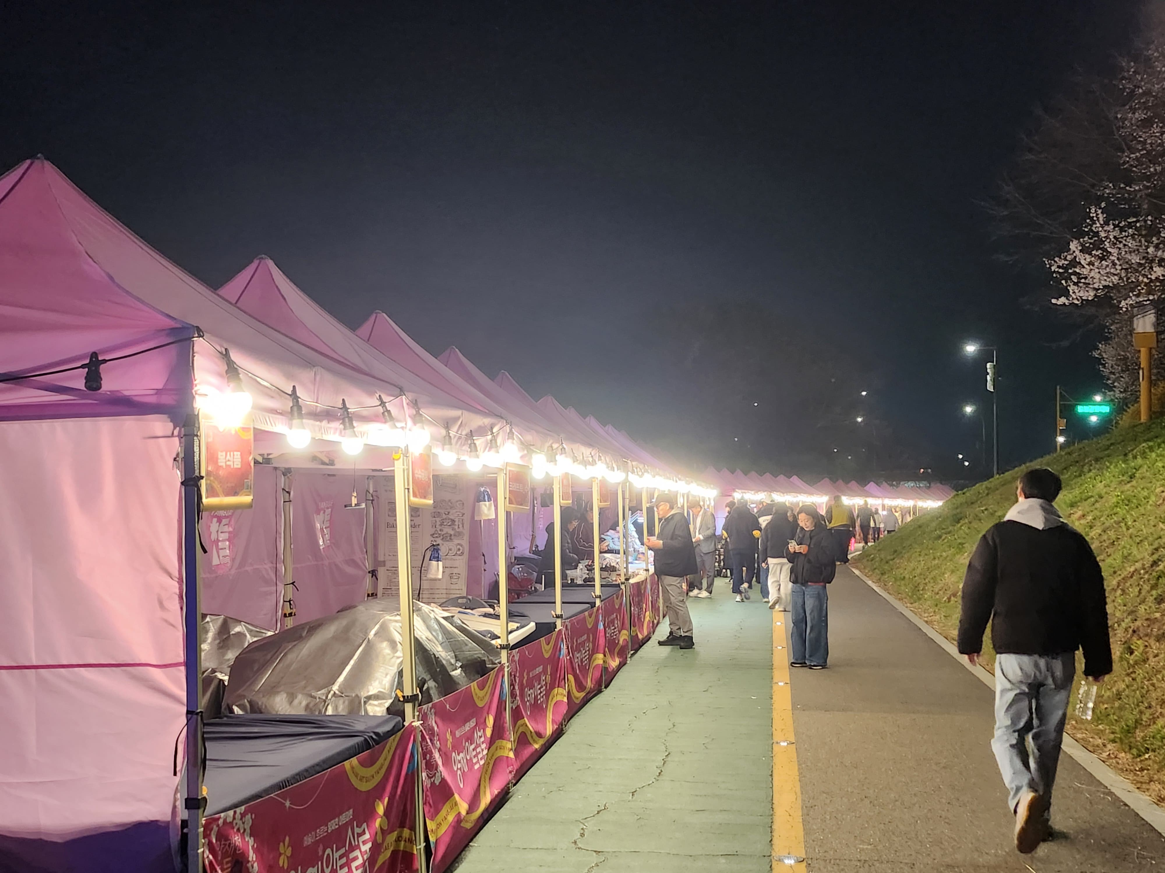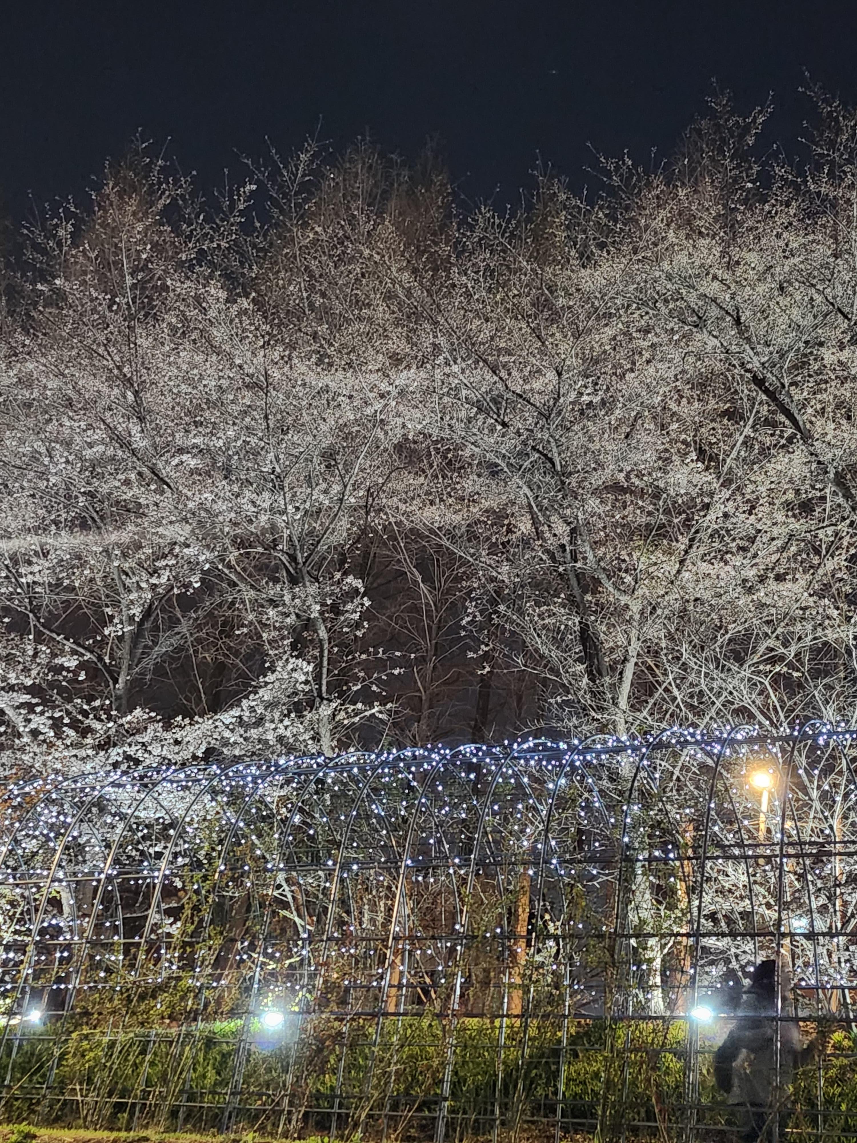 벚꽃과 조명이 어우러져 마치 한 폭의 풍경화 같았어요.