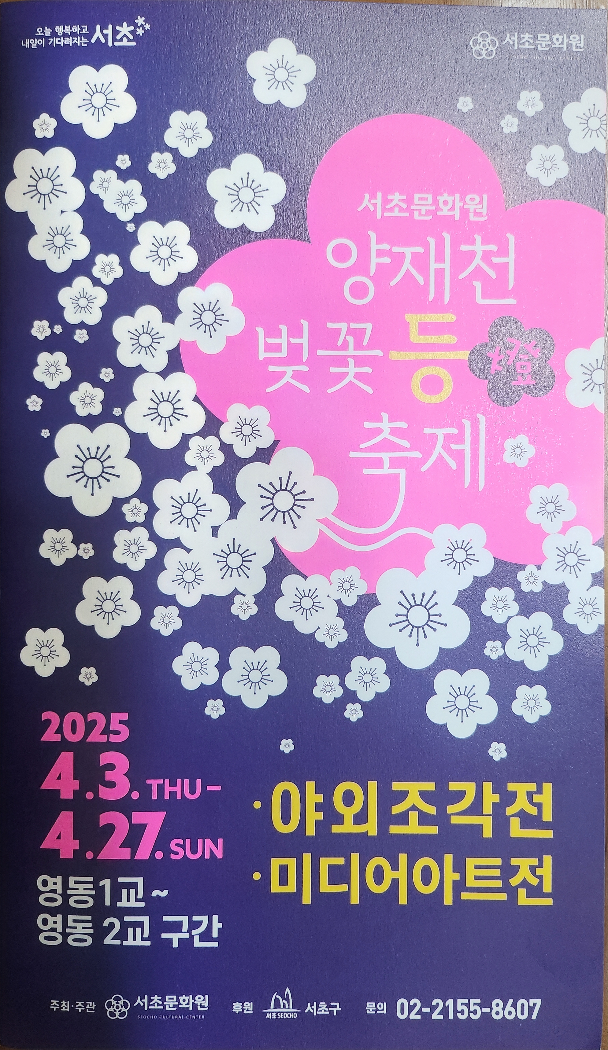 기간: 2025.04.03.(목) ~ 2025.04.06.(일) 장소: 양재천 영동1교 하부 굴다리 주제: “도심 속 예술과 봄을 입히다” |