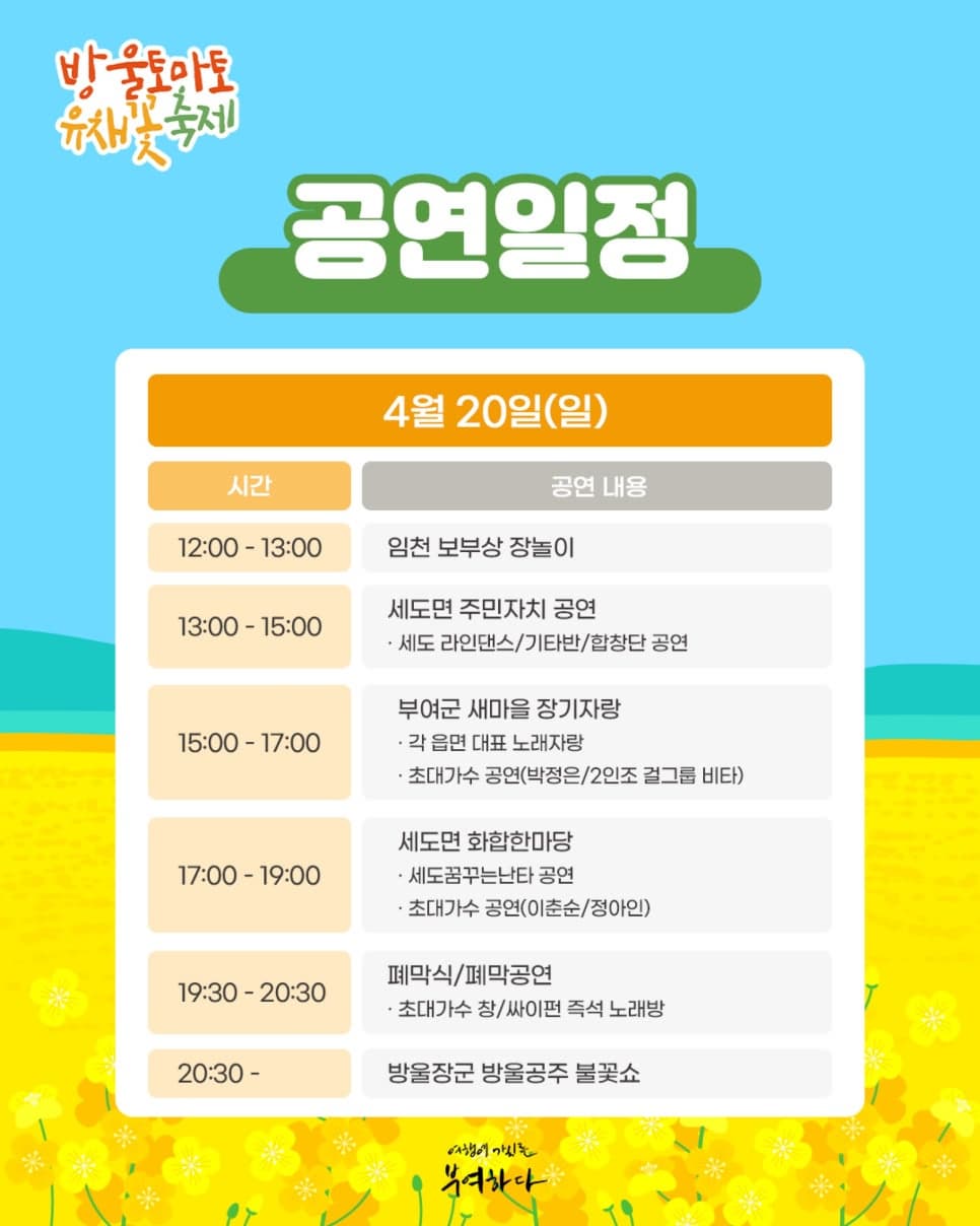 아래는 2025년 부여세도 방울토마토&유채꽃 축제 공식 홍보영상이에요.
