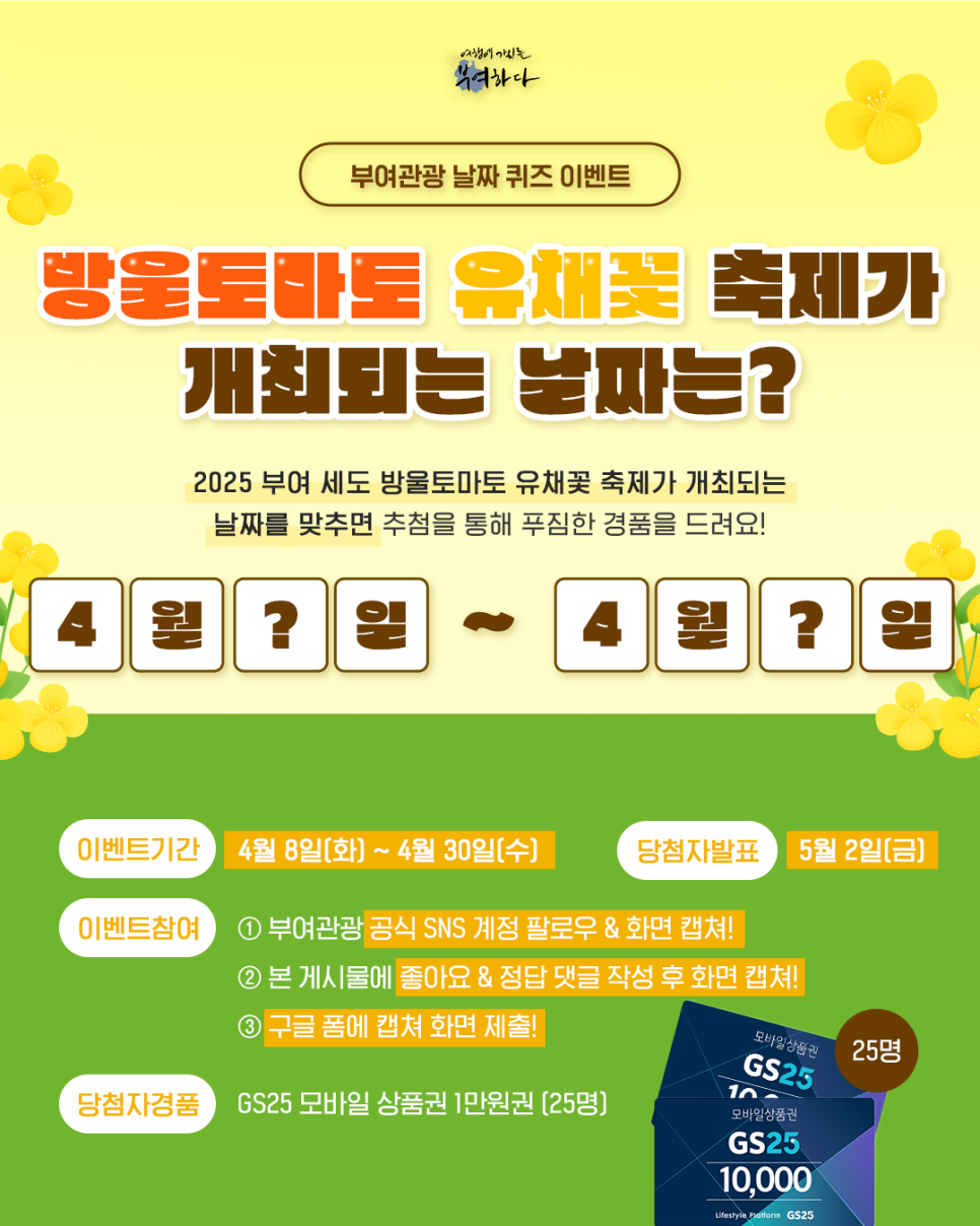 부여관광 SNS에서 진행 중인 ‘축제 날짜 맞히기 이벤트’에도 참여해보세요!