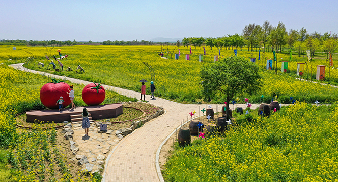 노란 유채꽃을 품은 들판과 새콤달콤한 방울토마토를 만나기 위해서였어요.