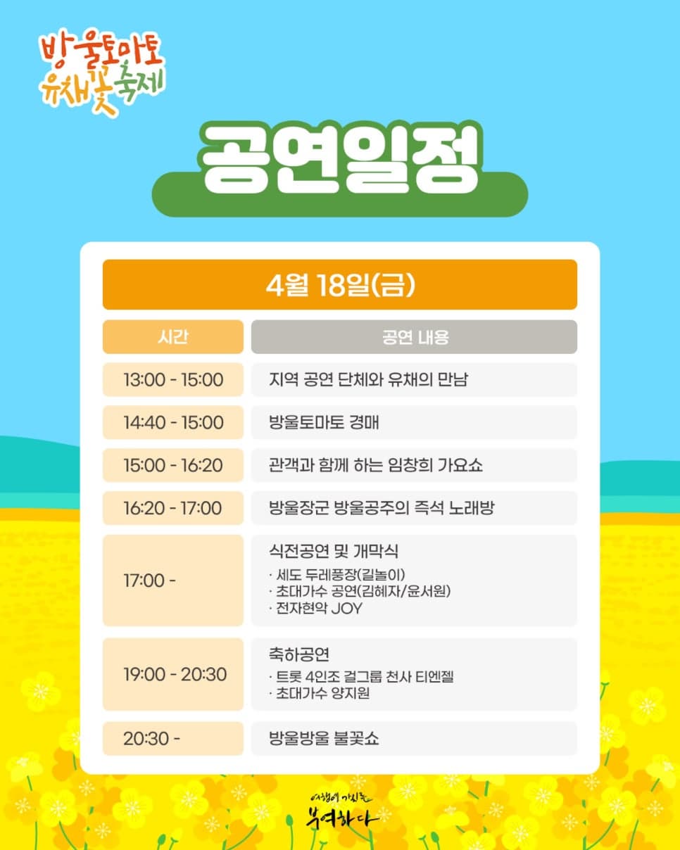 창녕 낙동강 유채꽃축제 |기간, 공연 일정, 실시간 개화 현황