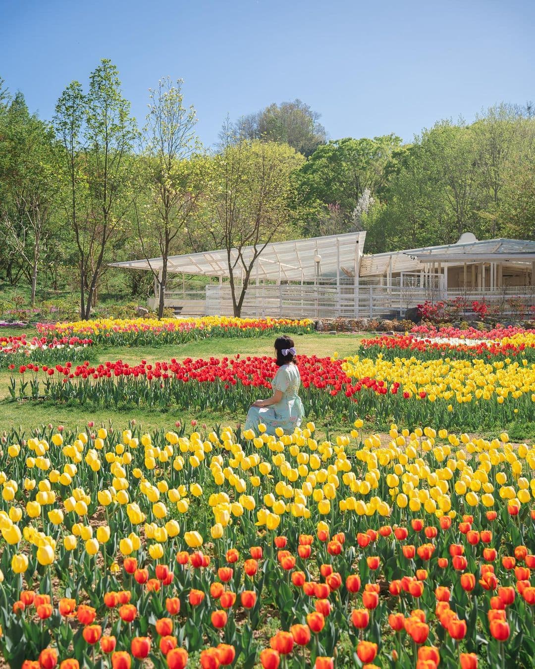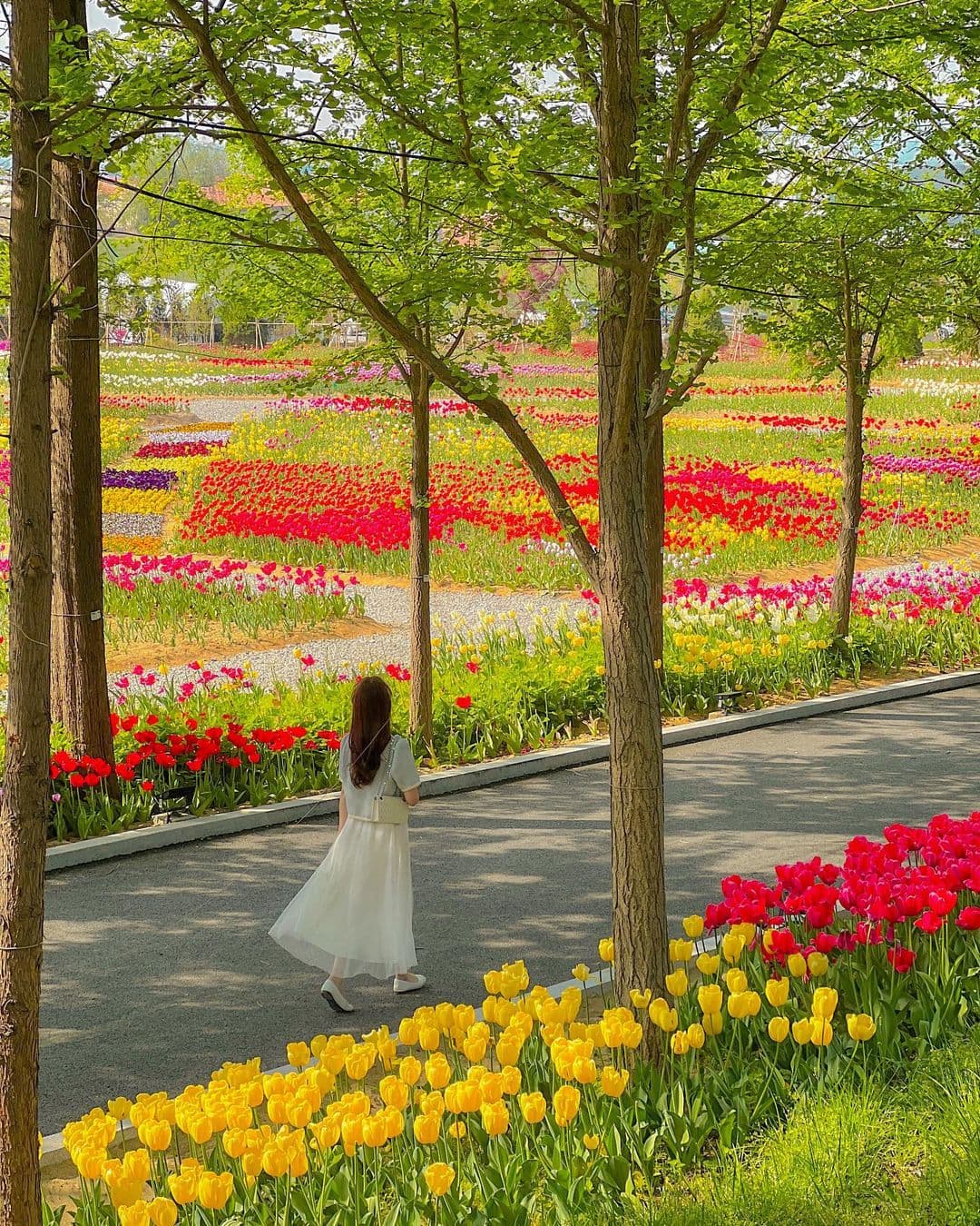 튤립밭 한가운데서 바람 따라 살랑이는 꽃들 사이로 걷는 그 기분,
