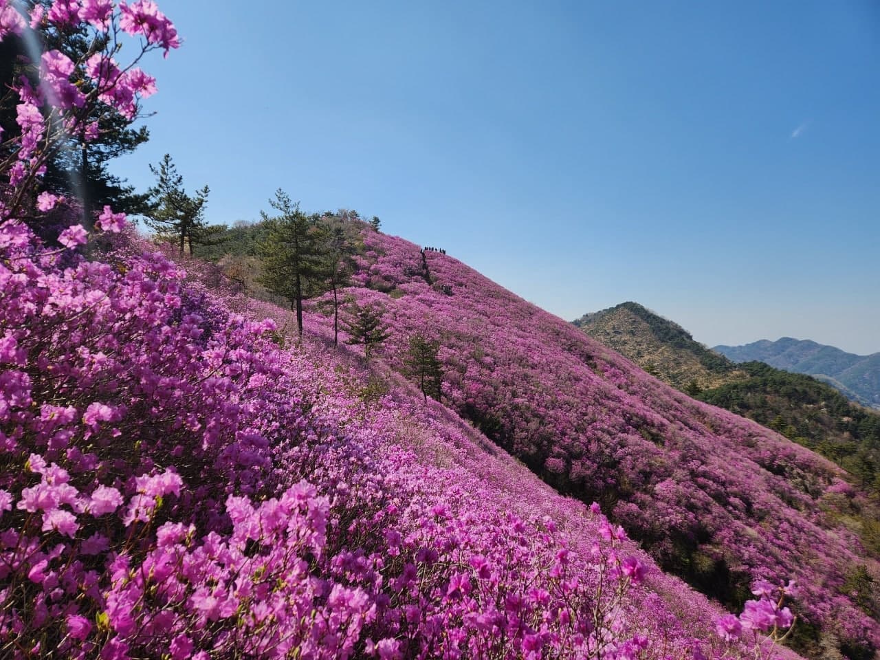 진한 분홍빛이 능선을 따라 흐드러지게 이어졌어요.