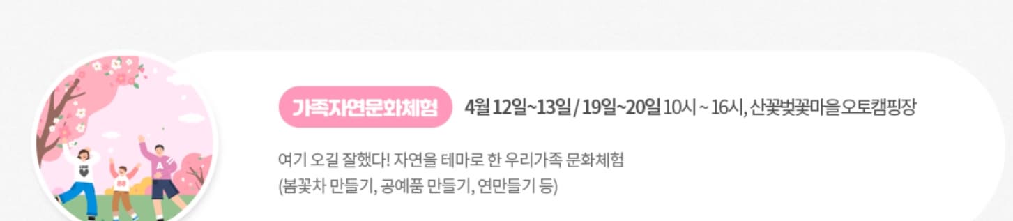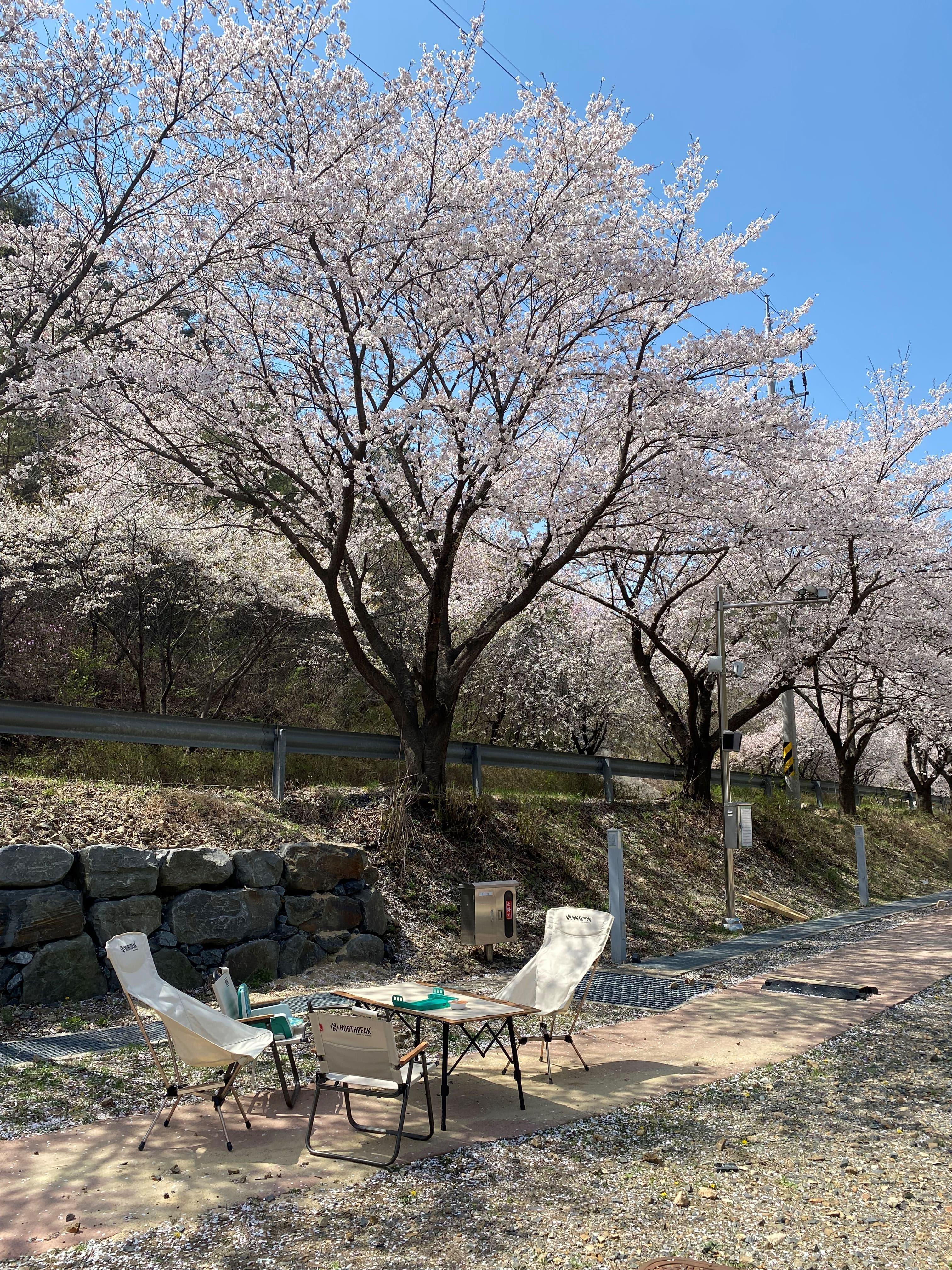 산벚꽃 축제기간인 4월은 꽃비가 내리는 캠핑장을 즐길 수 있어요.