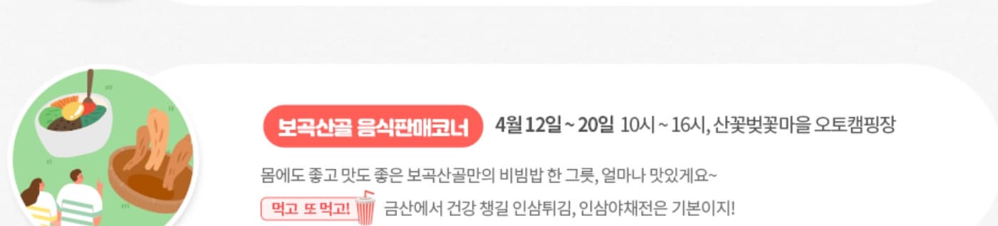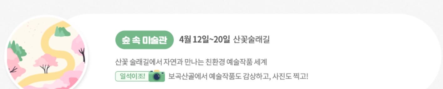 - 오후: 산꽃술래길 걷기 → 보물 인증샷 & 음악회