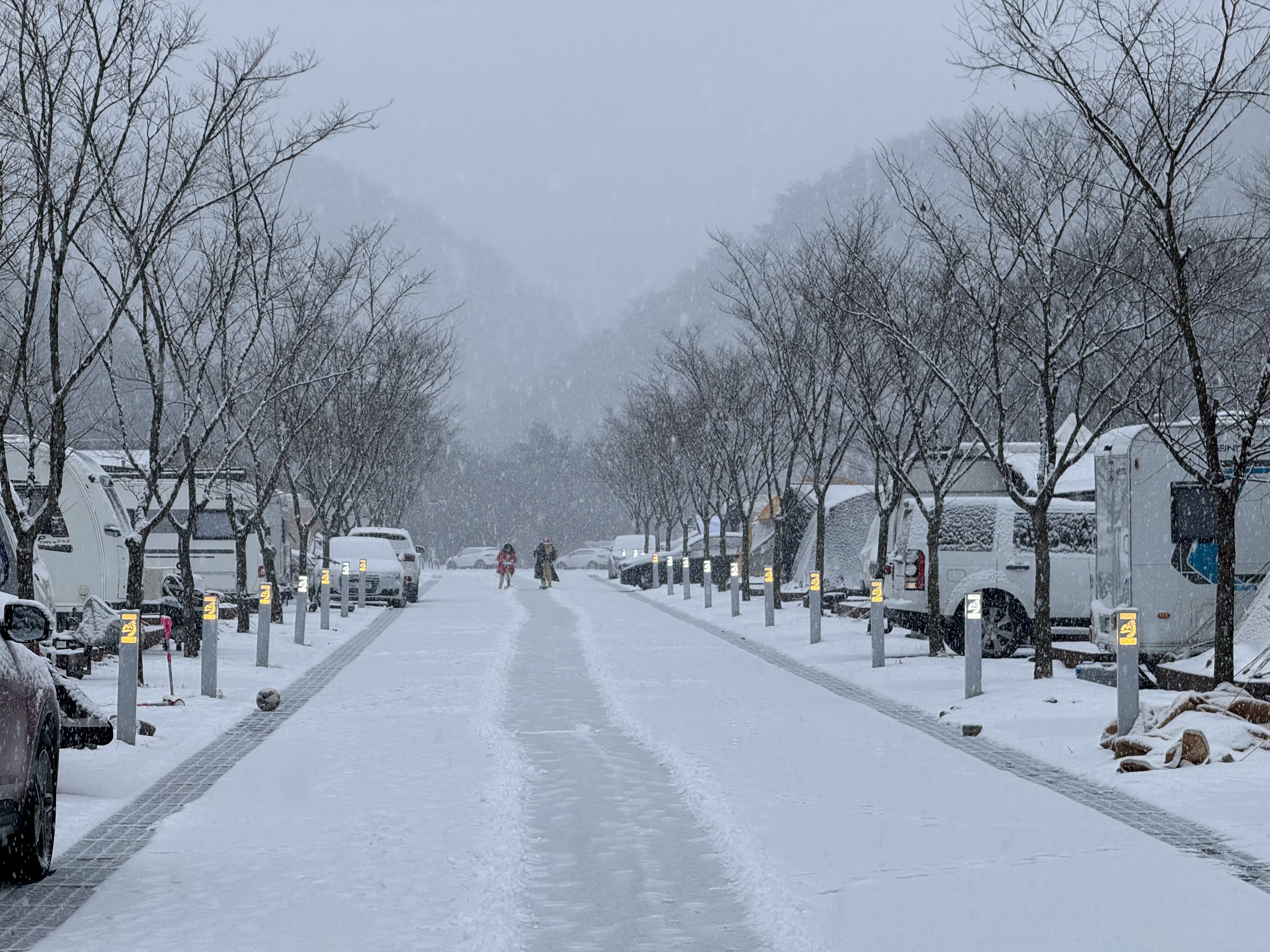 눈이 내린 캠핑장, 너무 예쁘지 않나요?