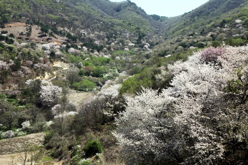 산벚꽃과 야생화가 순하게 피어나는 마을이죠.