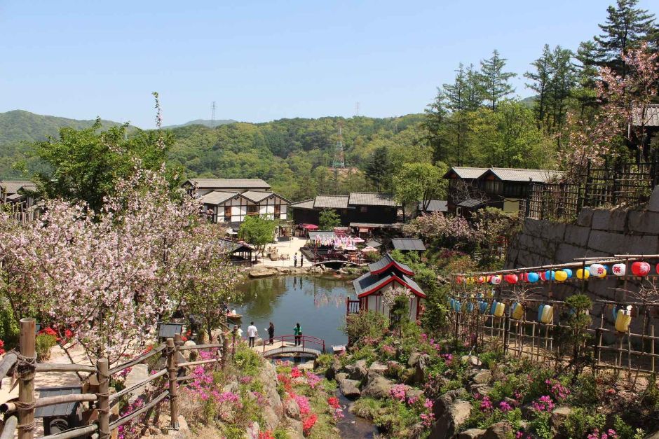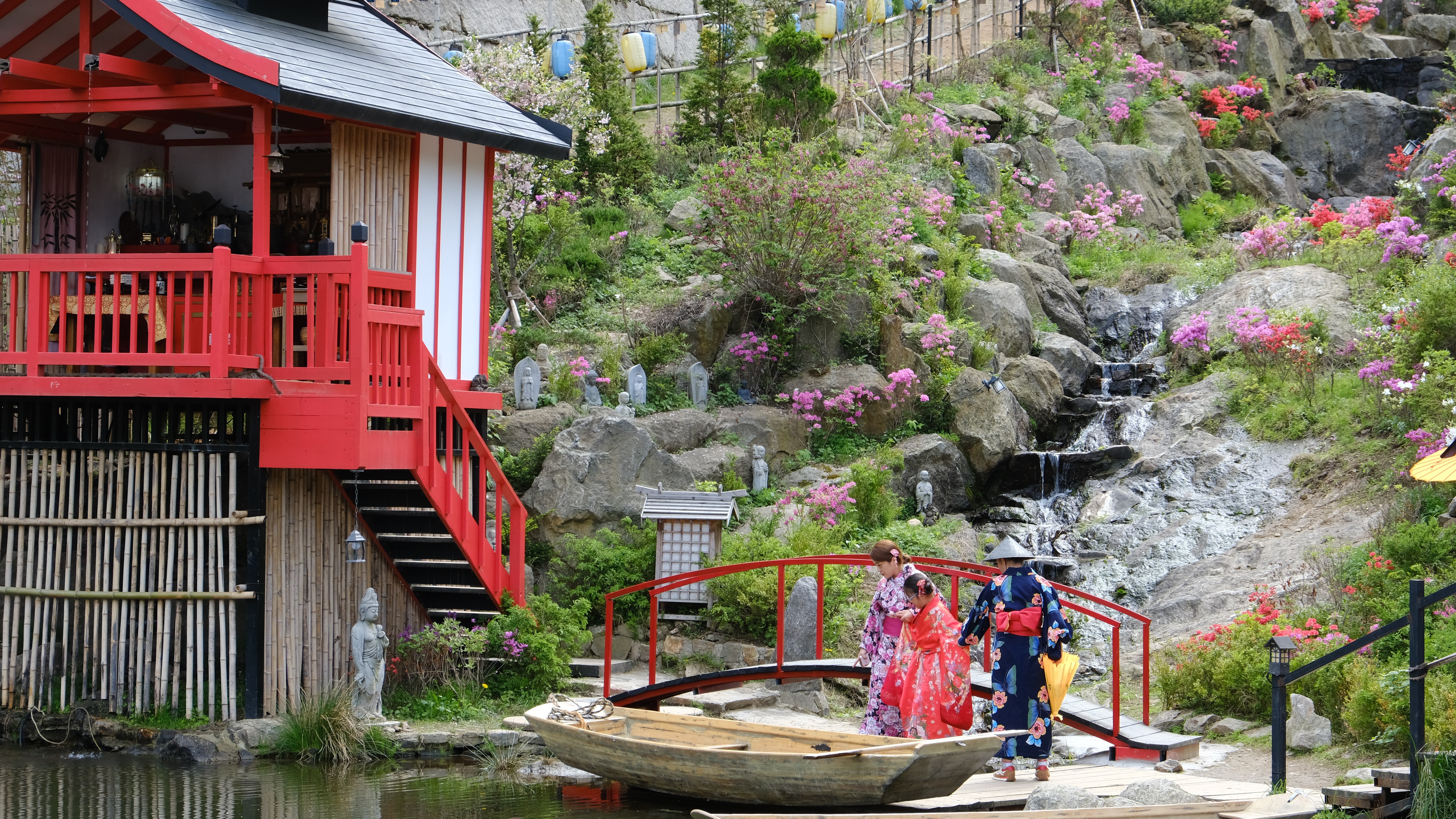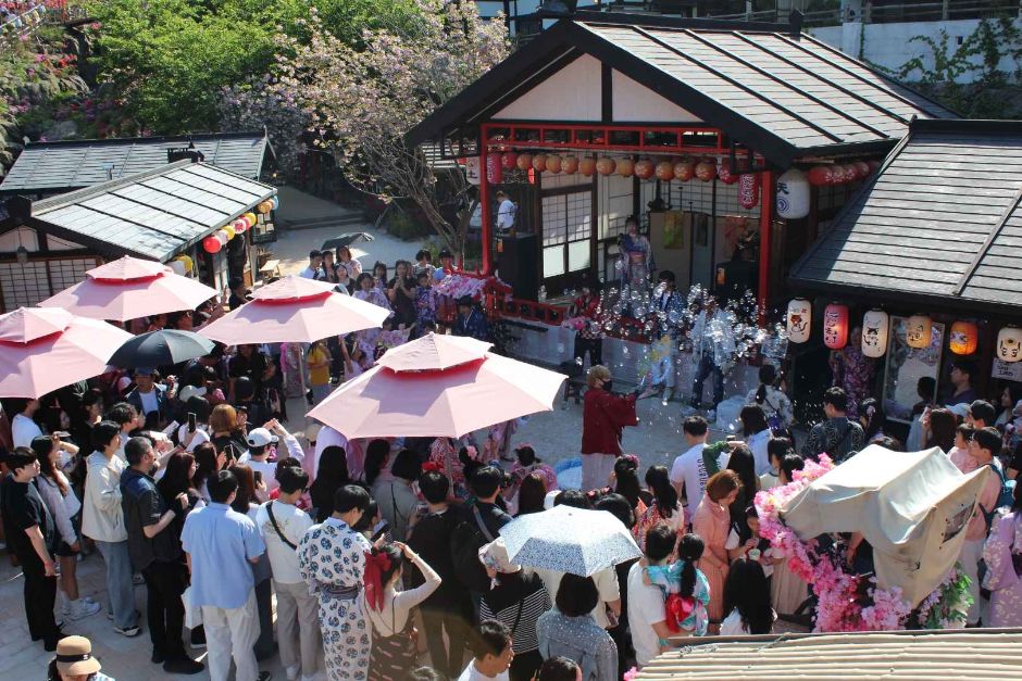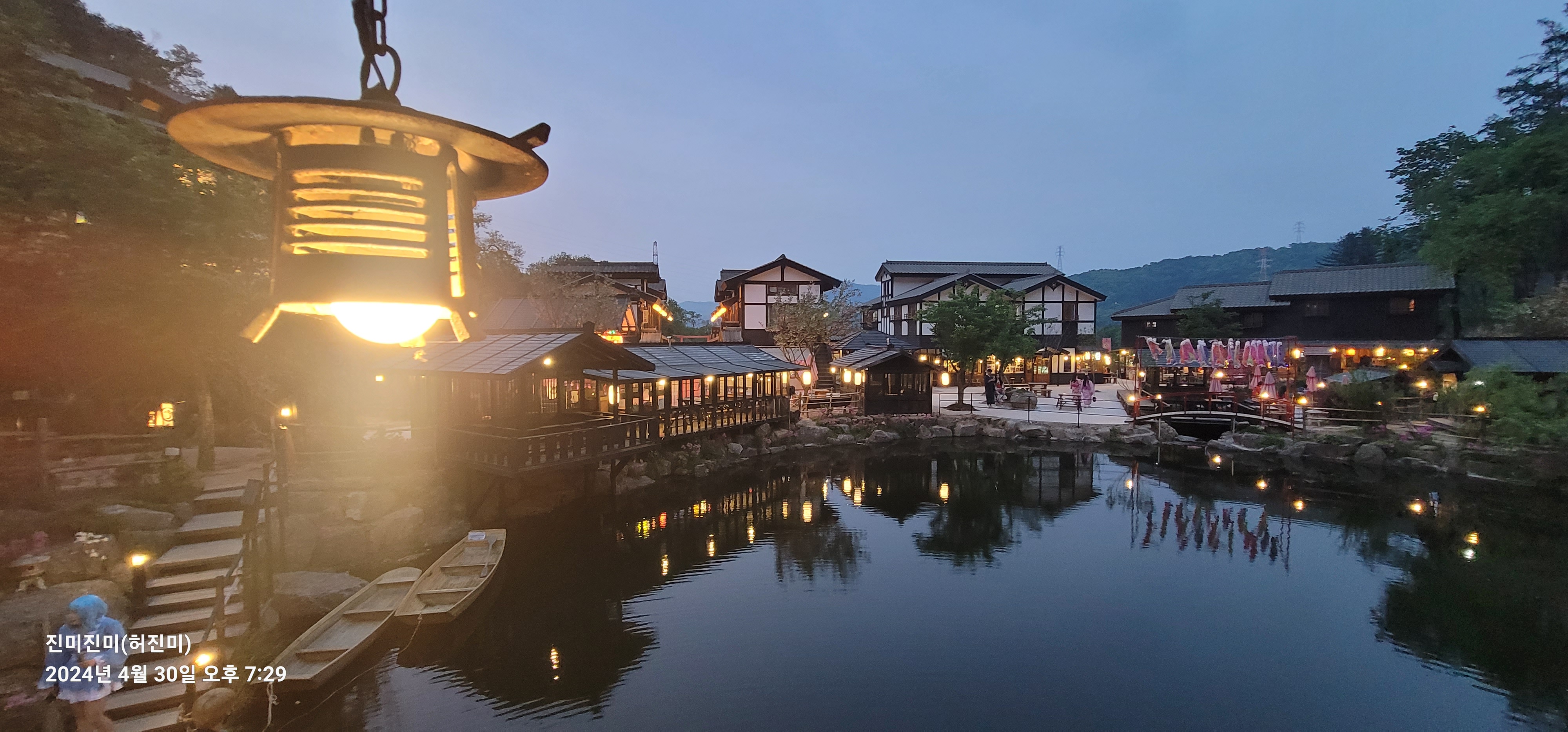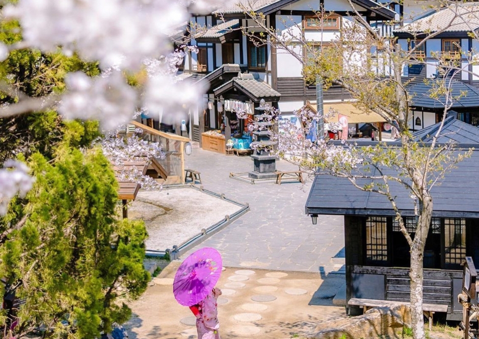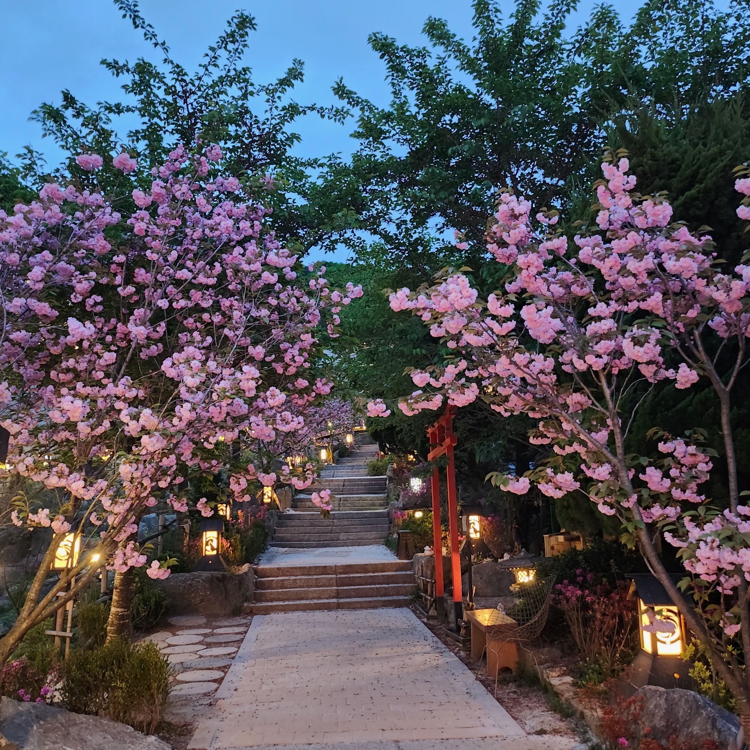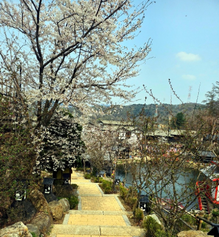 입구를 지나자마자 들려오는 “이랏샤이마세~” 인사에 순간 여기가 일본인가 착각할 정도였어요. 곳곳에는 일본식 목조 건물과 전통 장식, 연못 위를 수놓은 벚꽃나무와 아기자기한 소품들이 어우러져 있어, 걸음마다 감탄이 절로 나왔답니다.