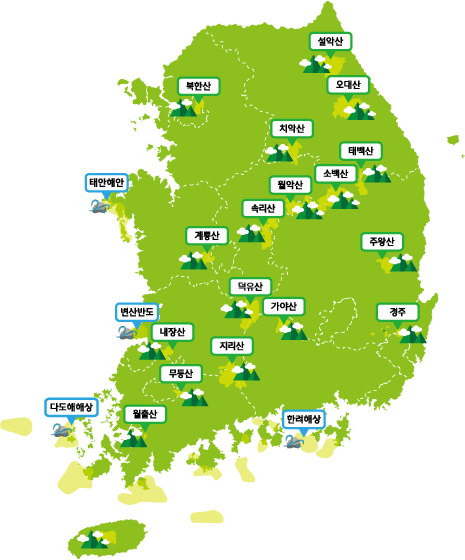 | 광주 | 무등산 국립공원 | 진달래와 철쭉이 이어 피어남 | 4월 중순 |