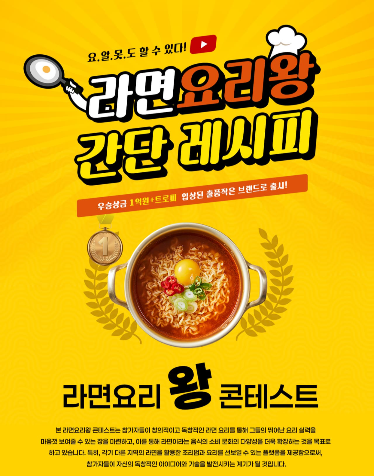- 라면요리왕 콘테스트: 5월 11일 결선, 우승 시 상금 1억 원!