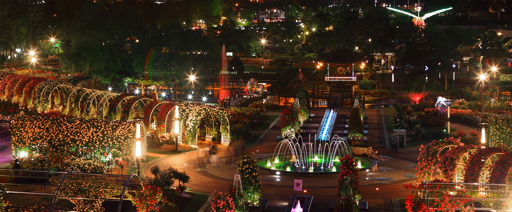 - 중앙광장 장미 고보조명 / 장미여신 야간 경관 / 포토 뷰포인트 조명