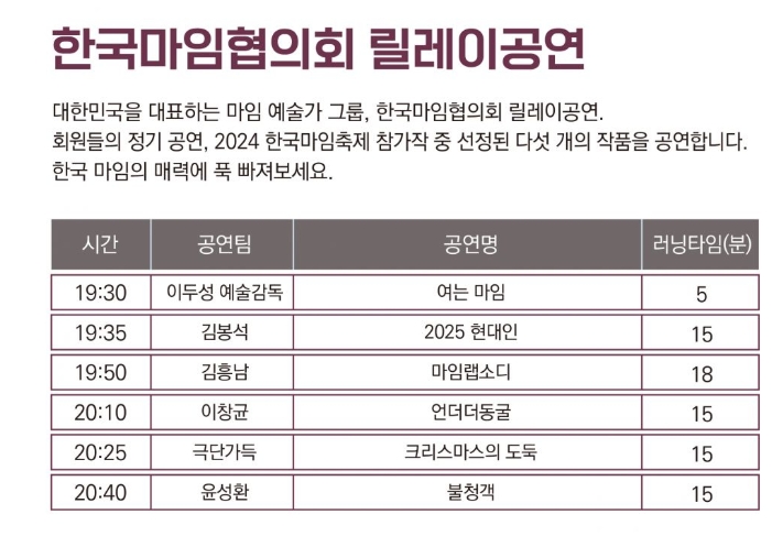 - 📚 마임 워크숍, 마임 릴레이 공연